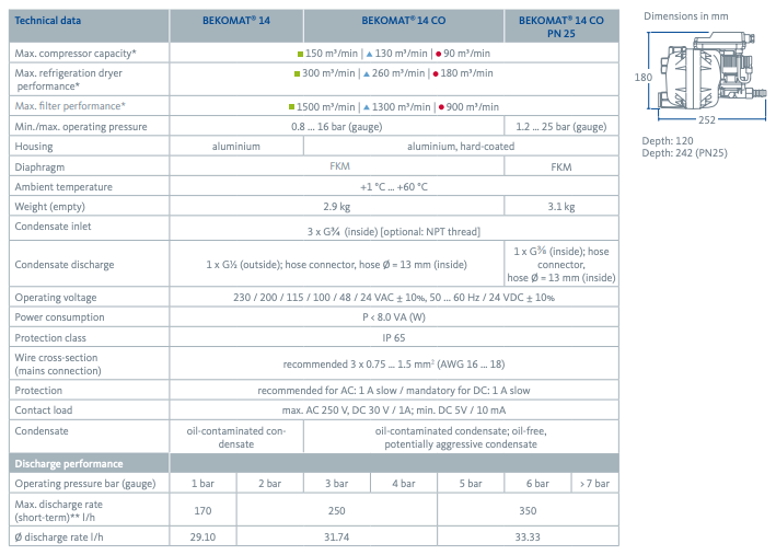Beko 14 volume-controlled condensate discharge with the BEKOMAT®
