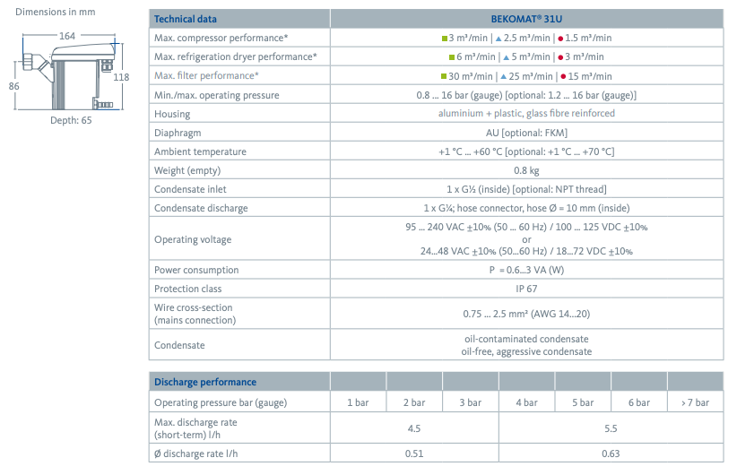 Beko 31-2 volume-controlled condensate discharge with the BEKOMAT®