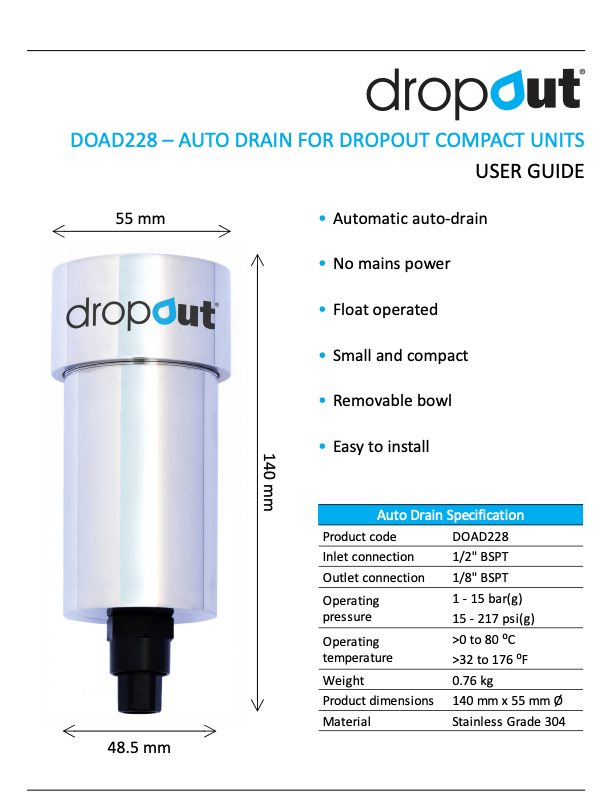 Transform manual maintenance into automated excellence and protect your air system from moisture woes. The Dropout DOAD228304 Autodrain Attachment is the corrosion-proof upgrade your setup deserves. Integrate it now for superior, set-it-and-forget-it air quality!