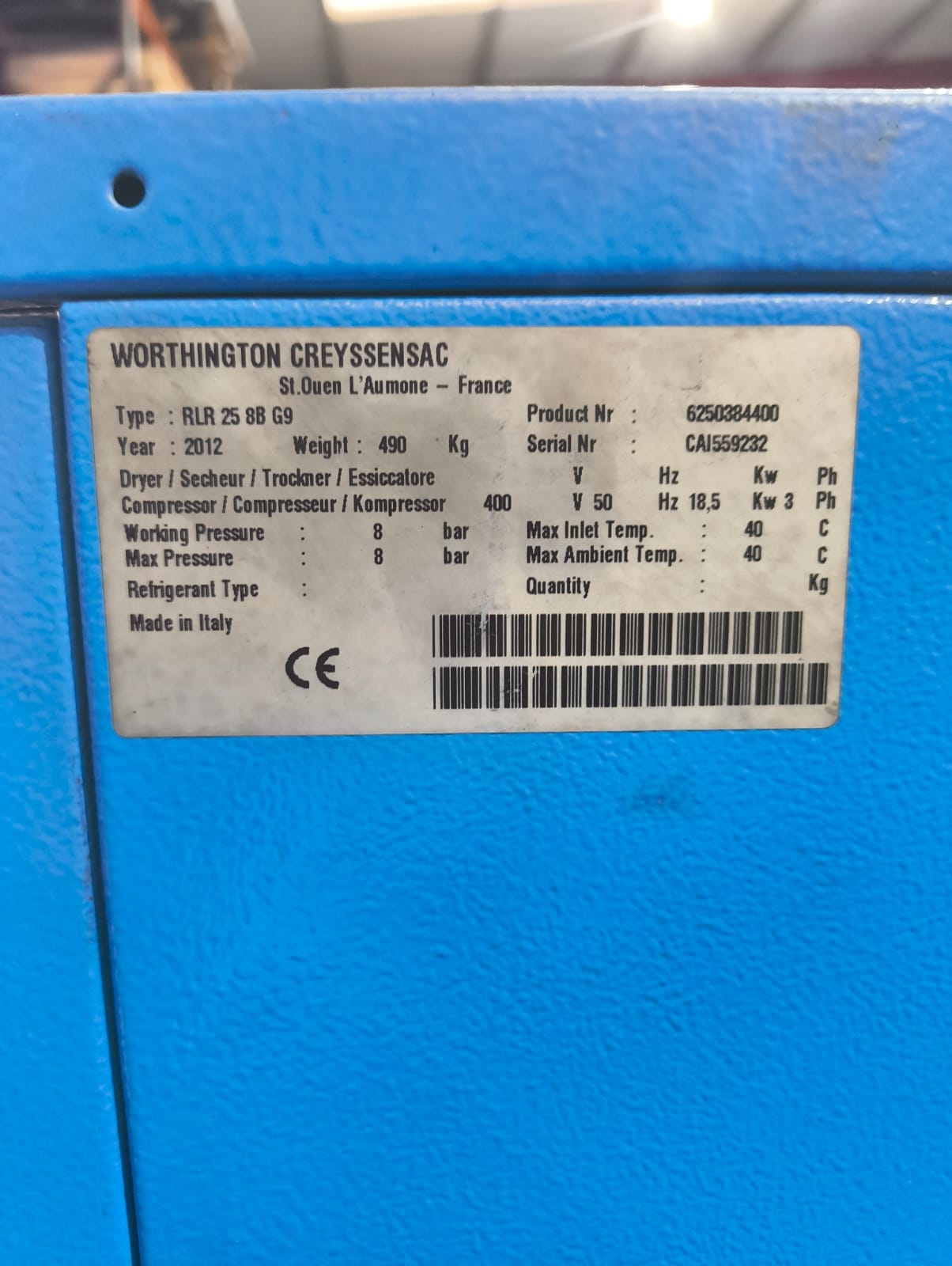 Refurbished 2012 Worthington RLR25 18.5kW Rotary Screw Compressor – 8 bar / 111 CFM