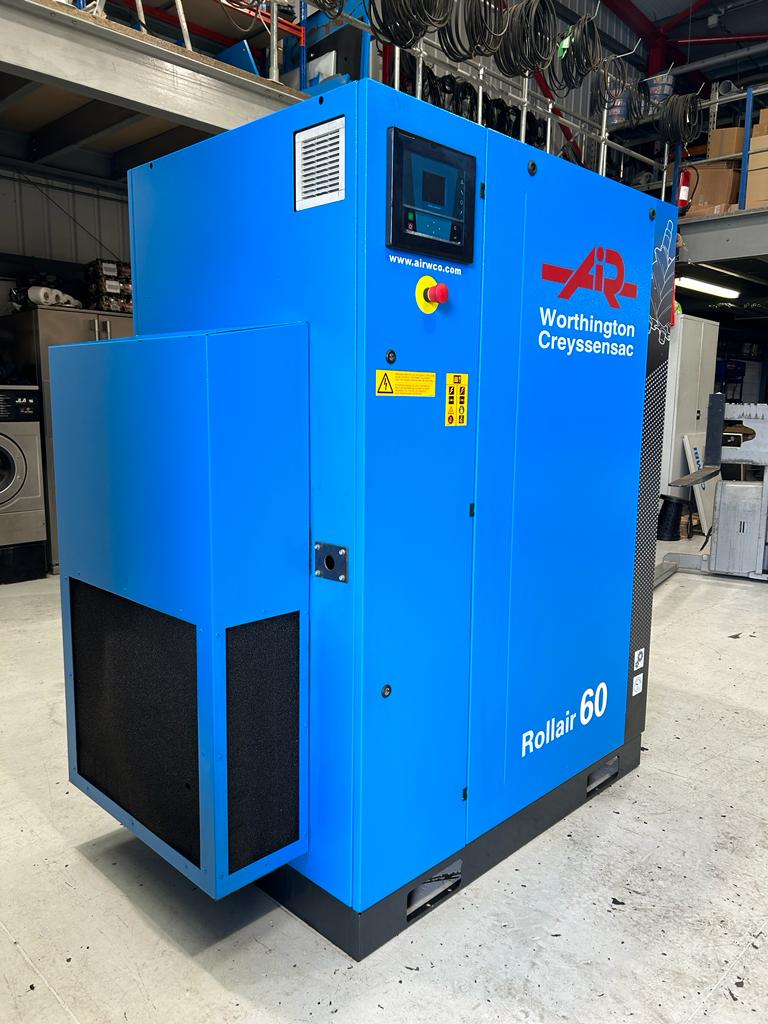 Fully refurbished 2017 Worthington Creyssensac Rollair RLR 60 – reliable 45kW fixed-speed rotary screw compressor. European-built quality (gear-driven for durability), reconditioned to the highest standard by Airlink Compressors using genuine parts.
