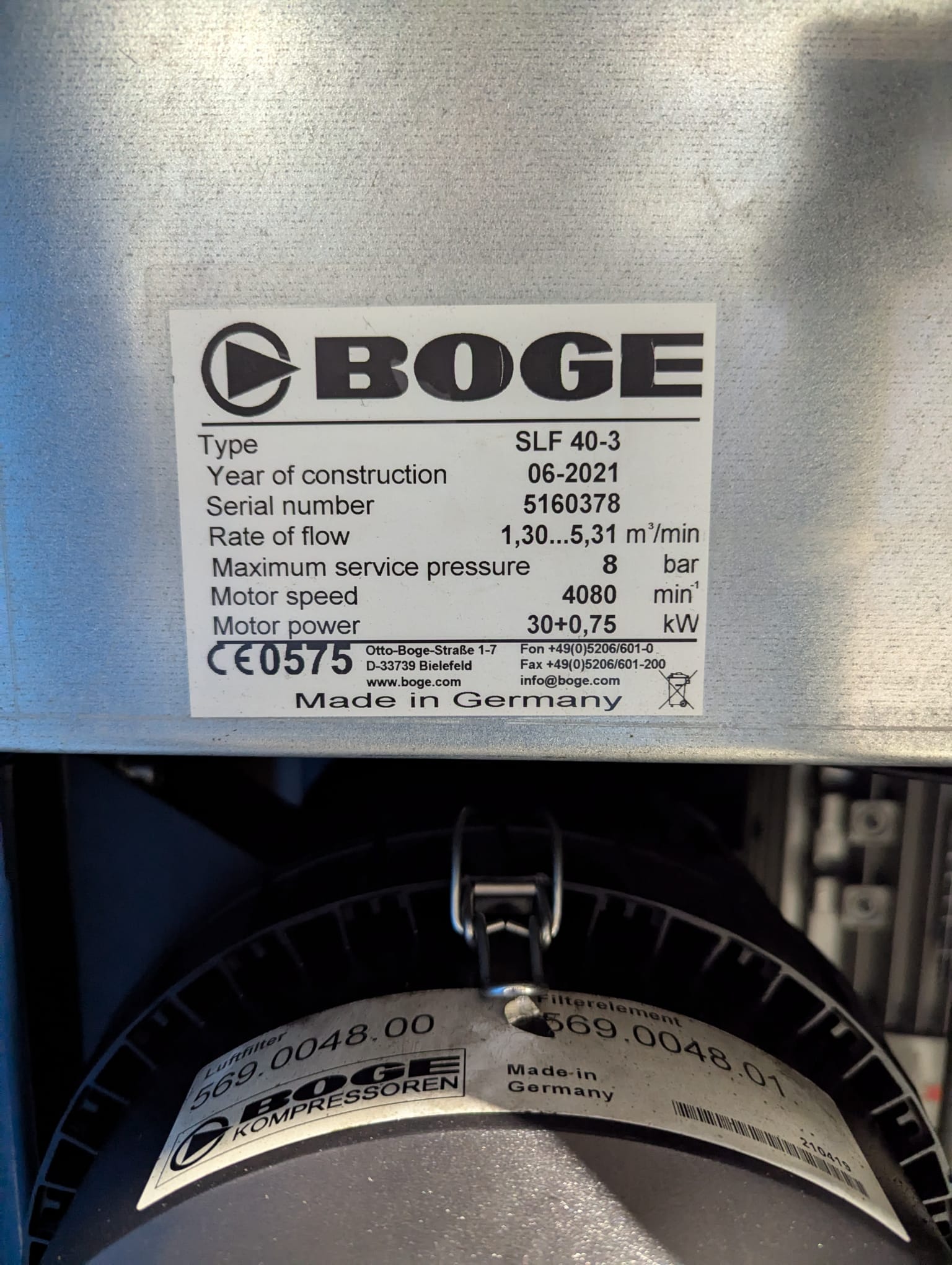 - Full genuine BOGE service kit fitted (filters, separator, synthetic oil)