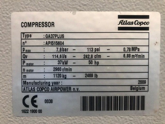 - Model: GA37 FF (Full Feature – integrated dryer)