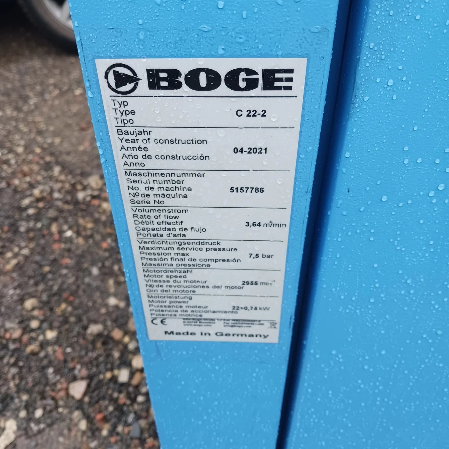 Compact German efficiency with ultra-low usage: this BOGE C22-2 from the advanced C-2 series has covered genuinely low running hours from new and benefits from the latest-generation air-end design for superior performance, quiet operation and easy maintenance.