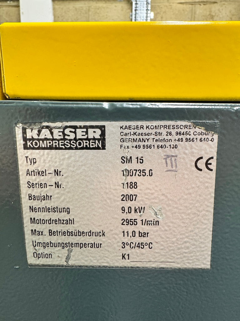 Reliable German compact efficiency: the Kaeser HPC SM15 (SM Series) is a belt-driven rotary screw compressor with Kaeser's legendary Sigma Profile air-end for superior energy efficiency, durability, and low noise – a proven choice for workshops and small-medium industrial applications.
