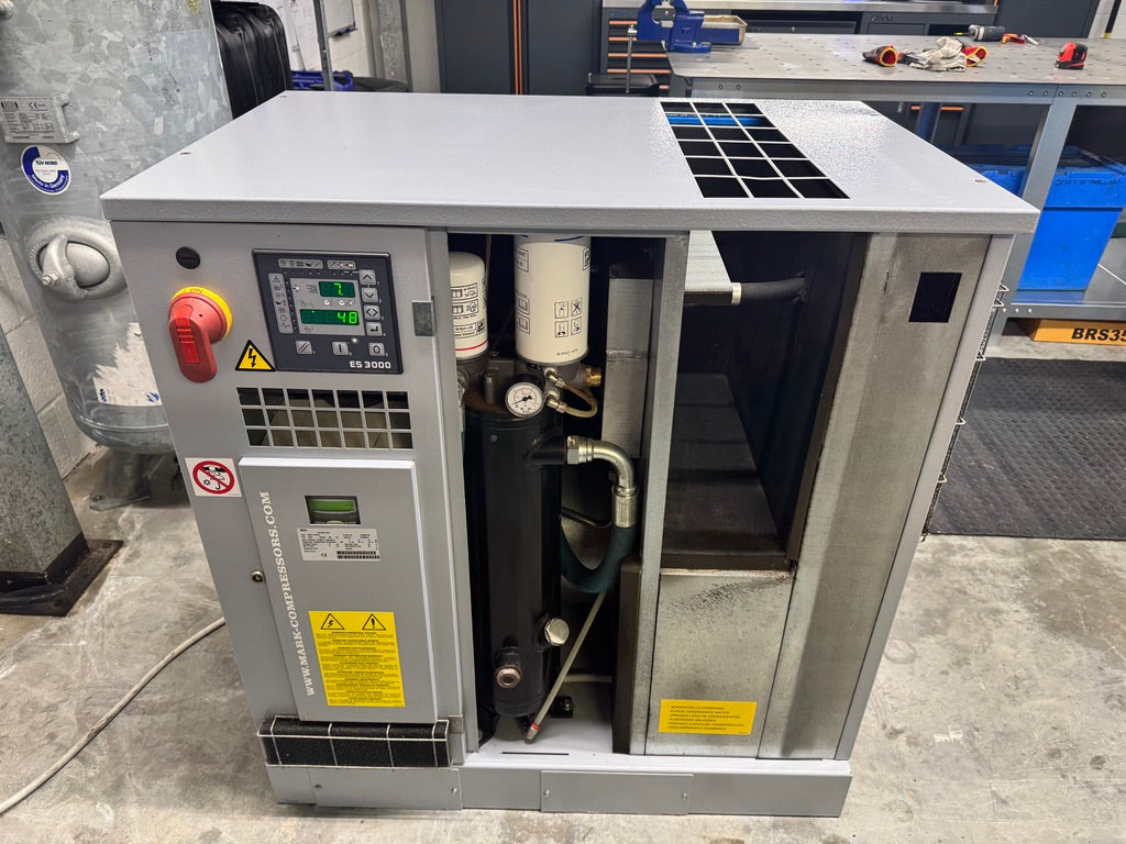 Fully refurbished in February 2026 by Airlink Compressors engineers (airlinkcompressors.com) using only genuine MARK spares throughout. This base-mounted configuration (not receiver-mounted) includes fitted filtration (pre- and/or line filter package) for cleaner air output, and is supplied ready to connect to an external 300-litre air receiver (CE certified, vertical – customer-supplied or available separately if required) for stable pressure, reduced cycling, and buffer storage in variable-demand setups.