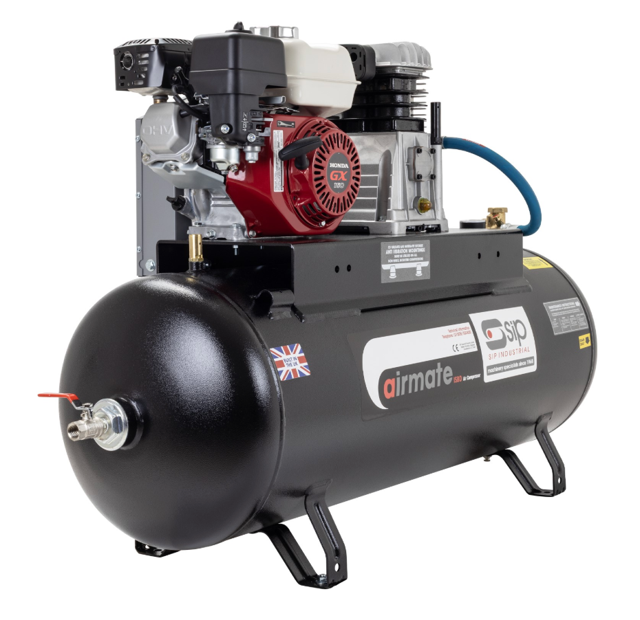 The SIP ISHP5.5/150 150ltr Industrial Petrol Compressor is a petrol-powered industrial compressor built with a heavy-duty and extremely reliable HONDA™ GX160 163cc EURO V-compliant engine, plus a multi-finned flywheel and large-finned cylinder head for increased cooling and optimal heat dissipation.
