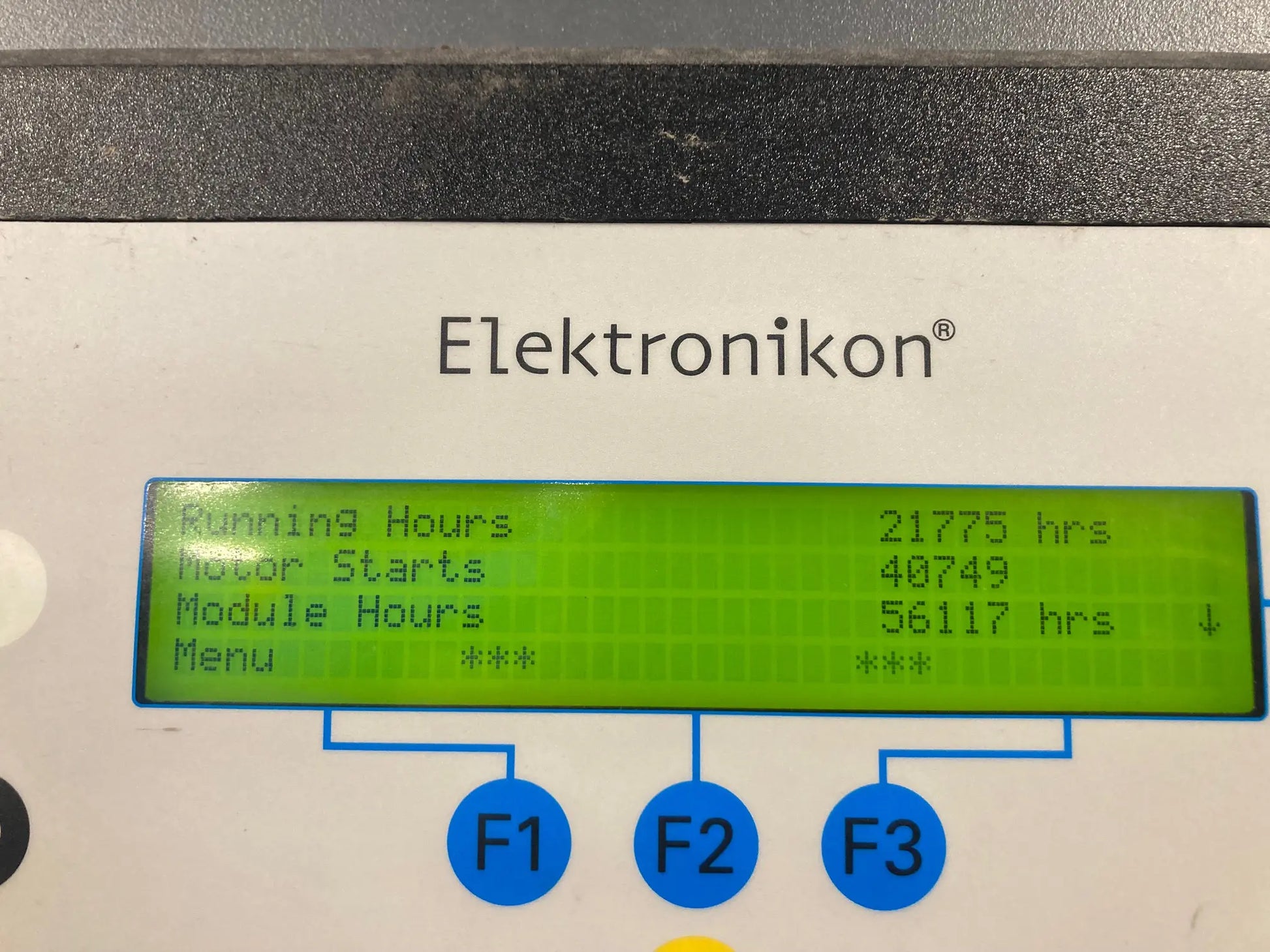 Machine also has spent most of its life running in the 40-60% speed bracket so all bearings and wearing parts have done 1/2 the life of a fixed speed air compressor, so it will effectively have only 10,000 hours compared to its fixed speed counterpart.
